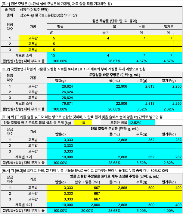즉, 내가 빚으려는 술은 음식디미방의 삼오주를 참고하여 내 방식대로 재해석한 술일뿐 삼오주는 아니게 된다.