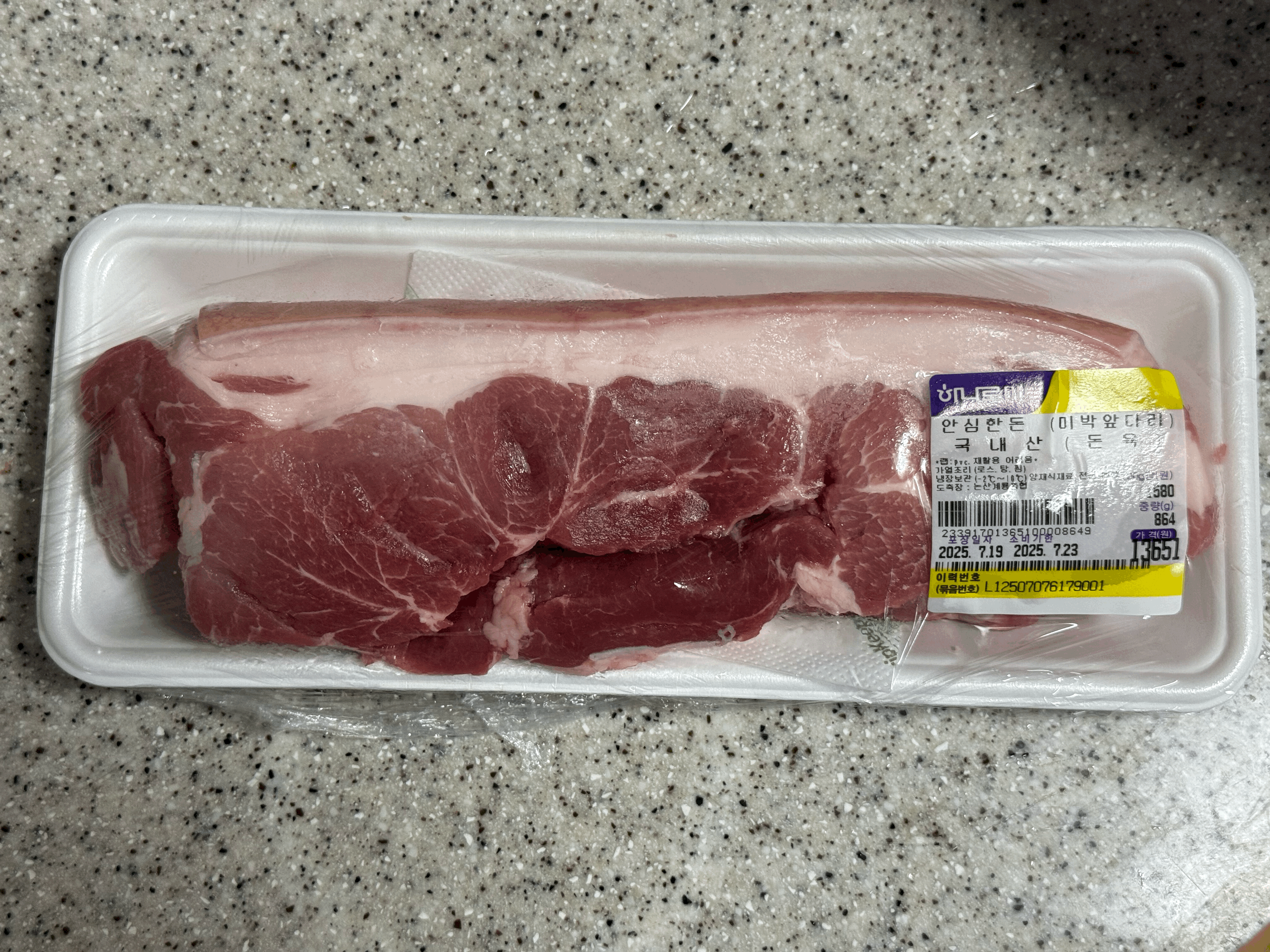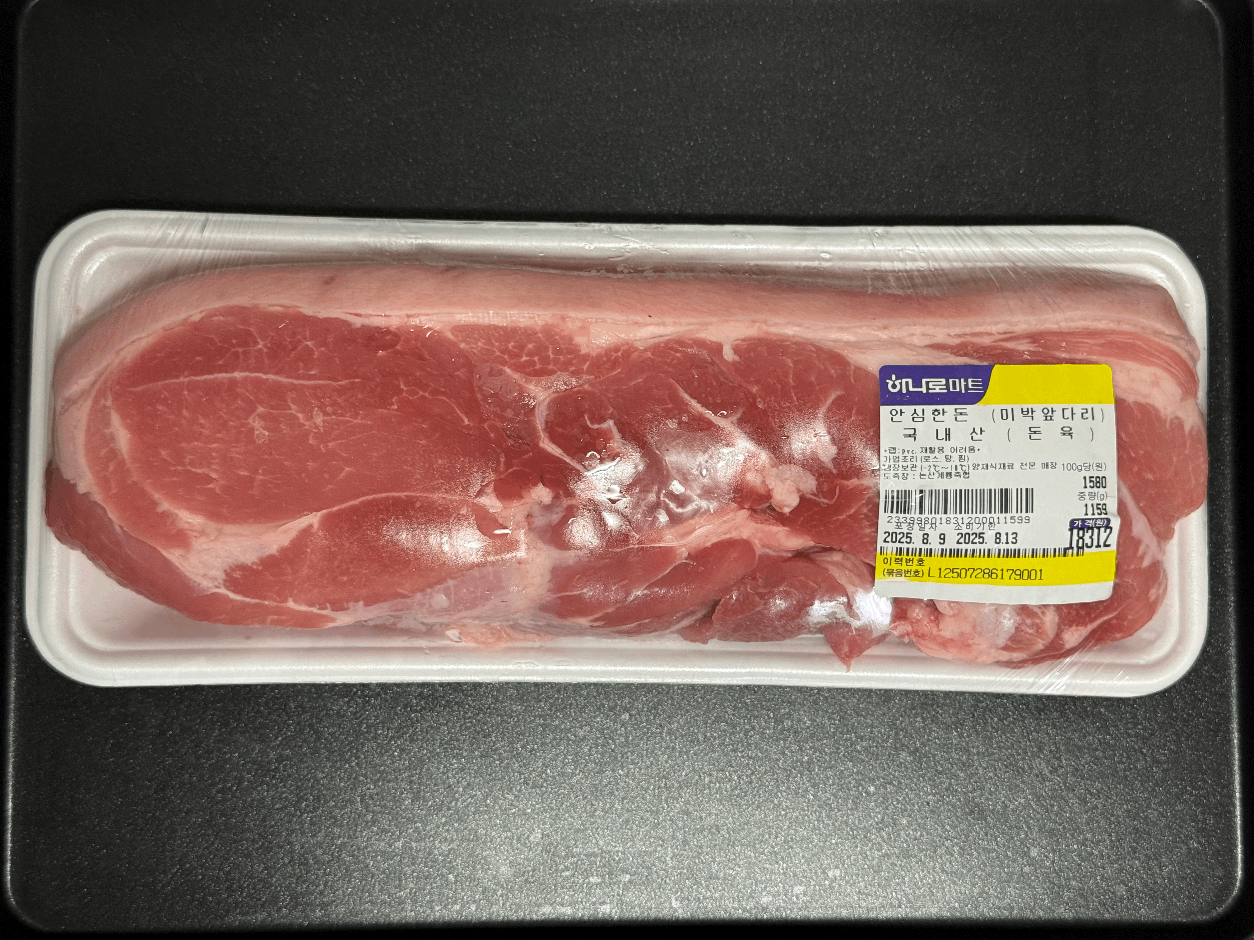 어제 구매한 앞다리는 1,580원/100g에 1,159g으로 총 18,312원이다.