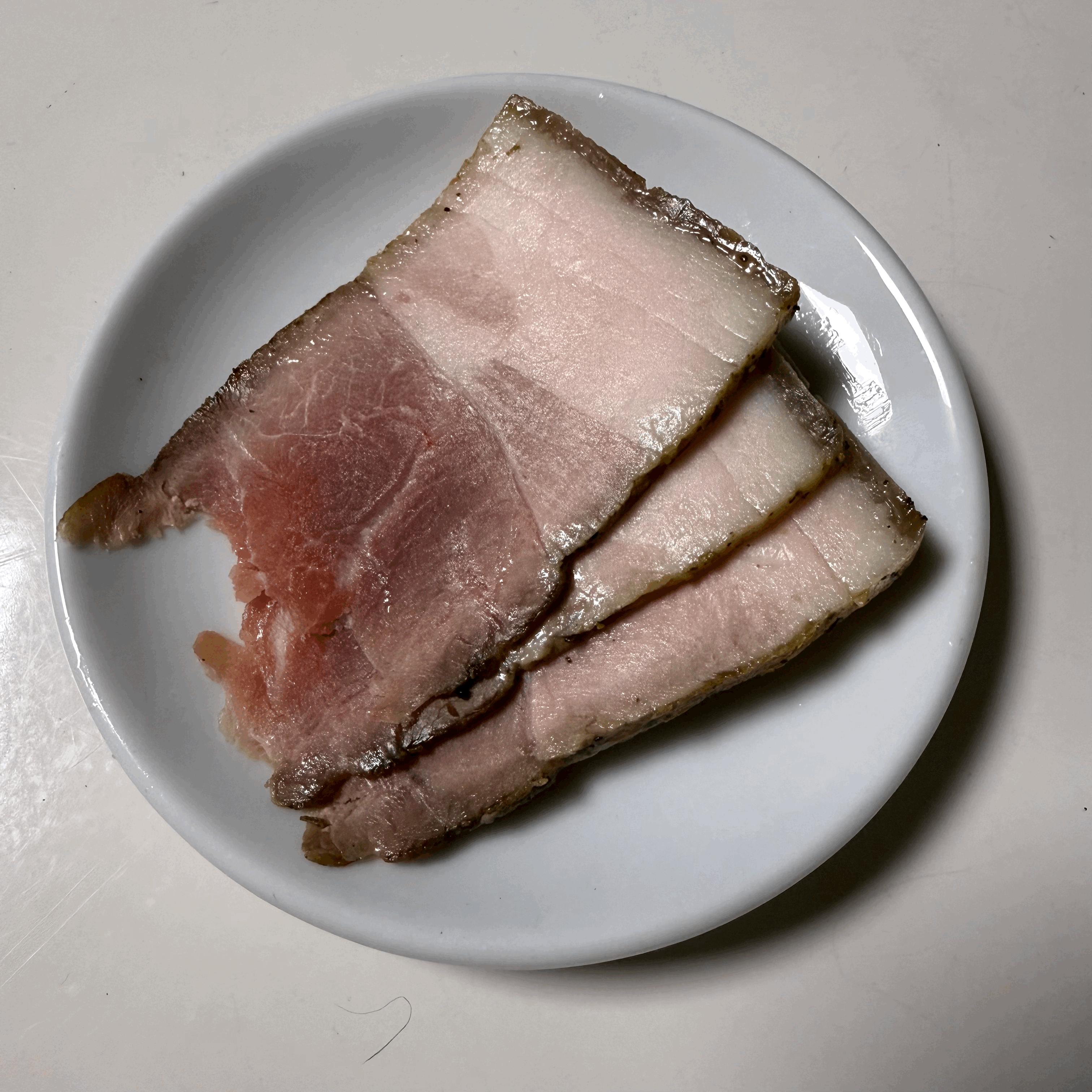 돼지고기의 가장 두꺼운 부위의 중심부 품온이 60℃ 언저리라면 분홍빛 미듐으로 익은 부드러운 고기가 나오고, 지방은 70~80℃ 언저리에서 장기간 익혀야 젤라틴이 부드러워지는데 그렇지 못해서 지방 식감도 푹 삶은 수육의 식감과 전혀 다른 식감이 나온다.