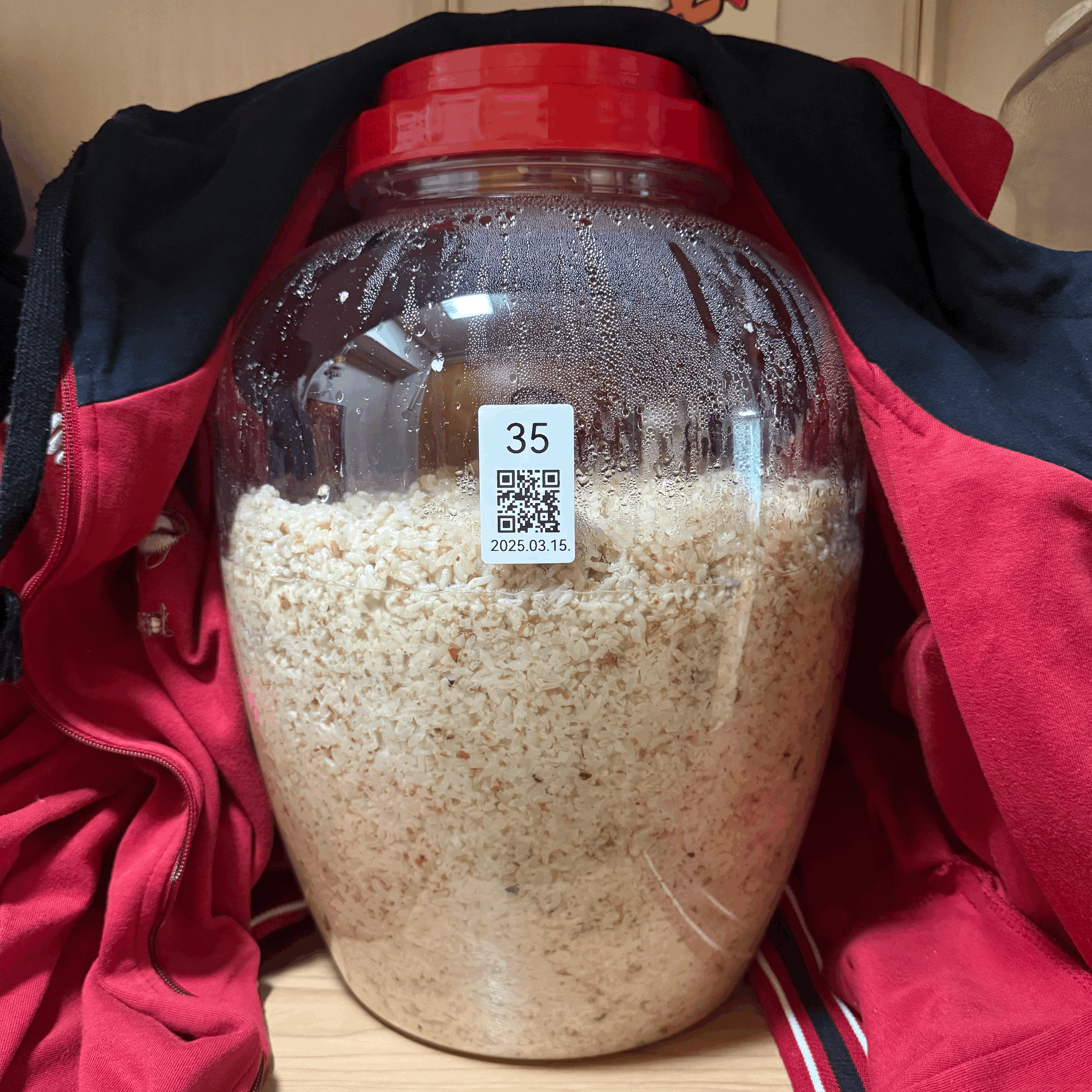 멥쌀:찹쌀=2:3 비율로 섞어 써본다. 30번 술에서 멥쌀과 찹쌀을 반반 섞었을 때의 술맛이 나쁘지 않았다. (발효 막바지에 술독을 흔들어서 가라앉은 생전분 때문에 생긴 것으로 추정하는 쓴맛은 제외했을 때)