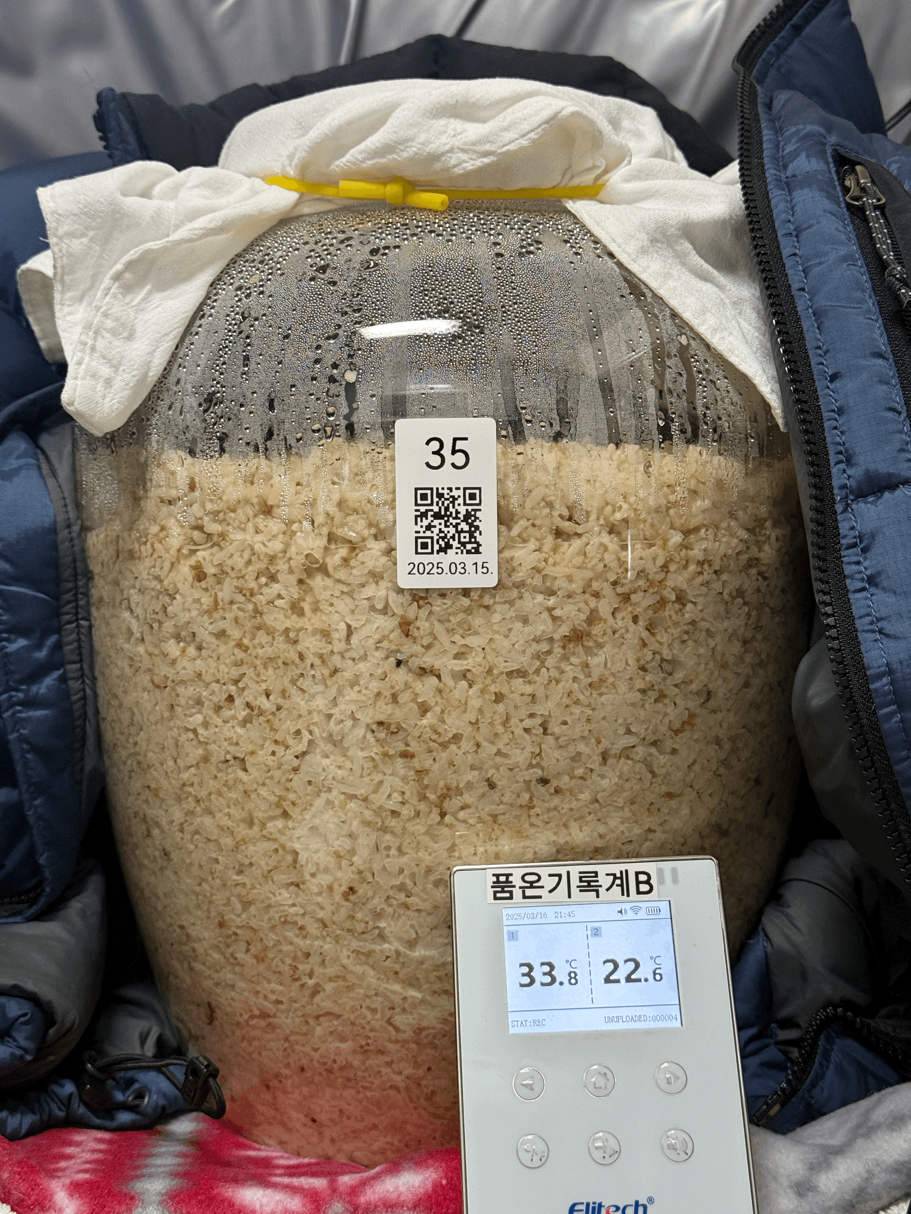 술독은 보쌈하여 주발효하되, 품온이 35℃를 초과하여 과하게 오르지는 않도록 관리한다. 만약 품온이 35℃를 넘긴다 해서 술이 실패하는 것은 아니고, 넘기지 않을 때와 술의 맛과 향이 조금 달라질 뿐이라 생각한다. 술의 품온이 너무 높으면 술의 맛과 향이 좀 단조로워지는 경향이 있는 것 같다.