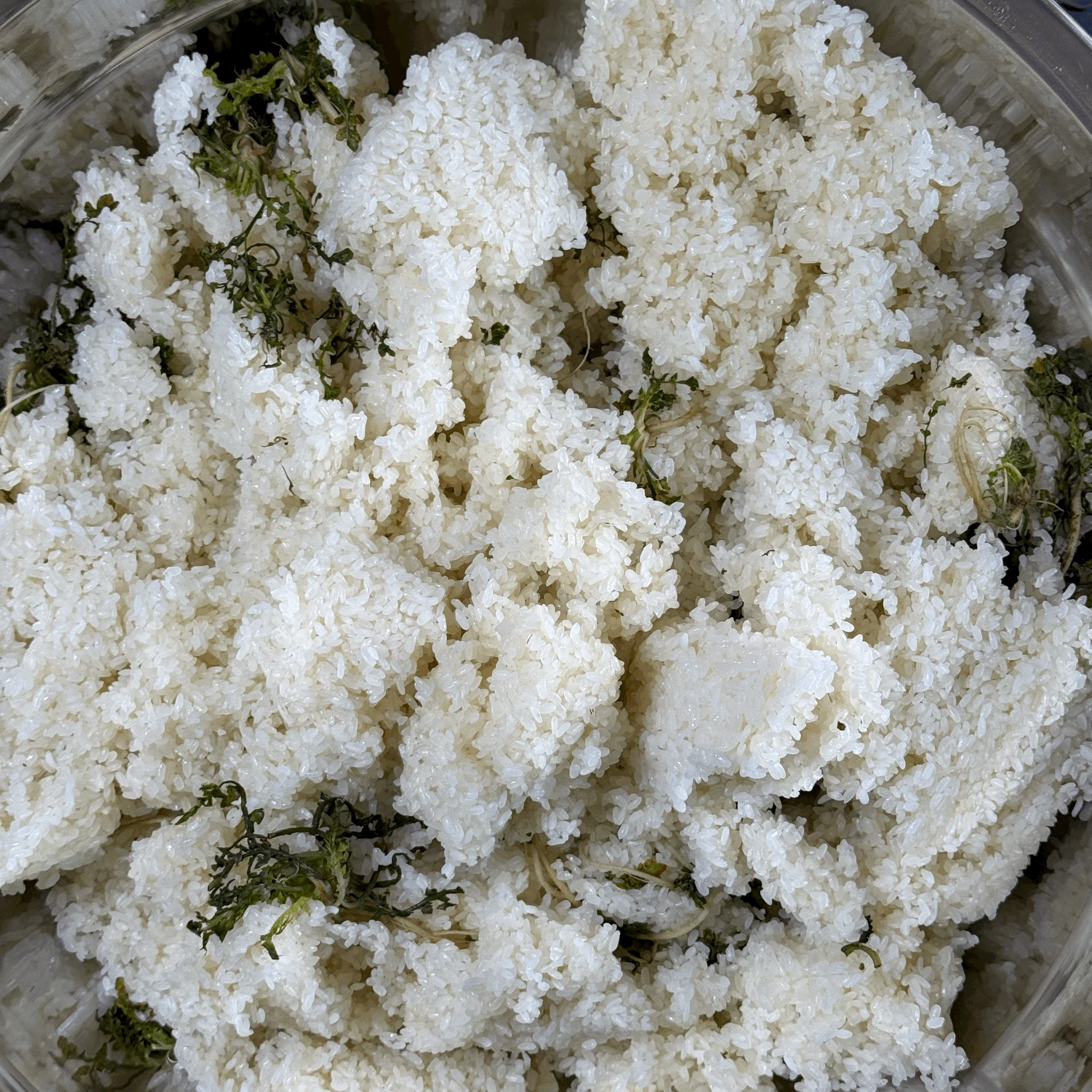 술 빚기 전날 밤에 마트에서 냉이 100g를 사왔다. 유자 제스트처럼 냉이도 일단 쌀 대비 2%만 써본다. 내가 술 빚을 때 건 부재료는 쌀 대비 0.2%를 기준점으로 잡으니 건 부재료 대비 생 부재료를 10배의 양으로 잡았다 보면 된다. 향을 내는 부재료를 쓸 때 적게 쓰는 이유는 무엇을 넣은 것인지 아리송할 정도로 살짝 스칠 정도의 향만 내기 위해서다. 생 재료이므로 혹시 있을지도 모를 잡균을 살균도 할 겸고두밥 찔 때 마지막 뜸들이는 시점에 고두밥 위에 올려 증기로 쪄서 쓸 예정이다. 고두밥 뜸들일 때 고두밥 윗면에 냉이를 펼쳐놓고 고두밥을 약불로 뜸 들인다.