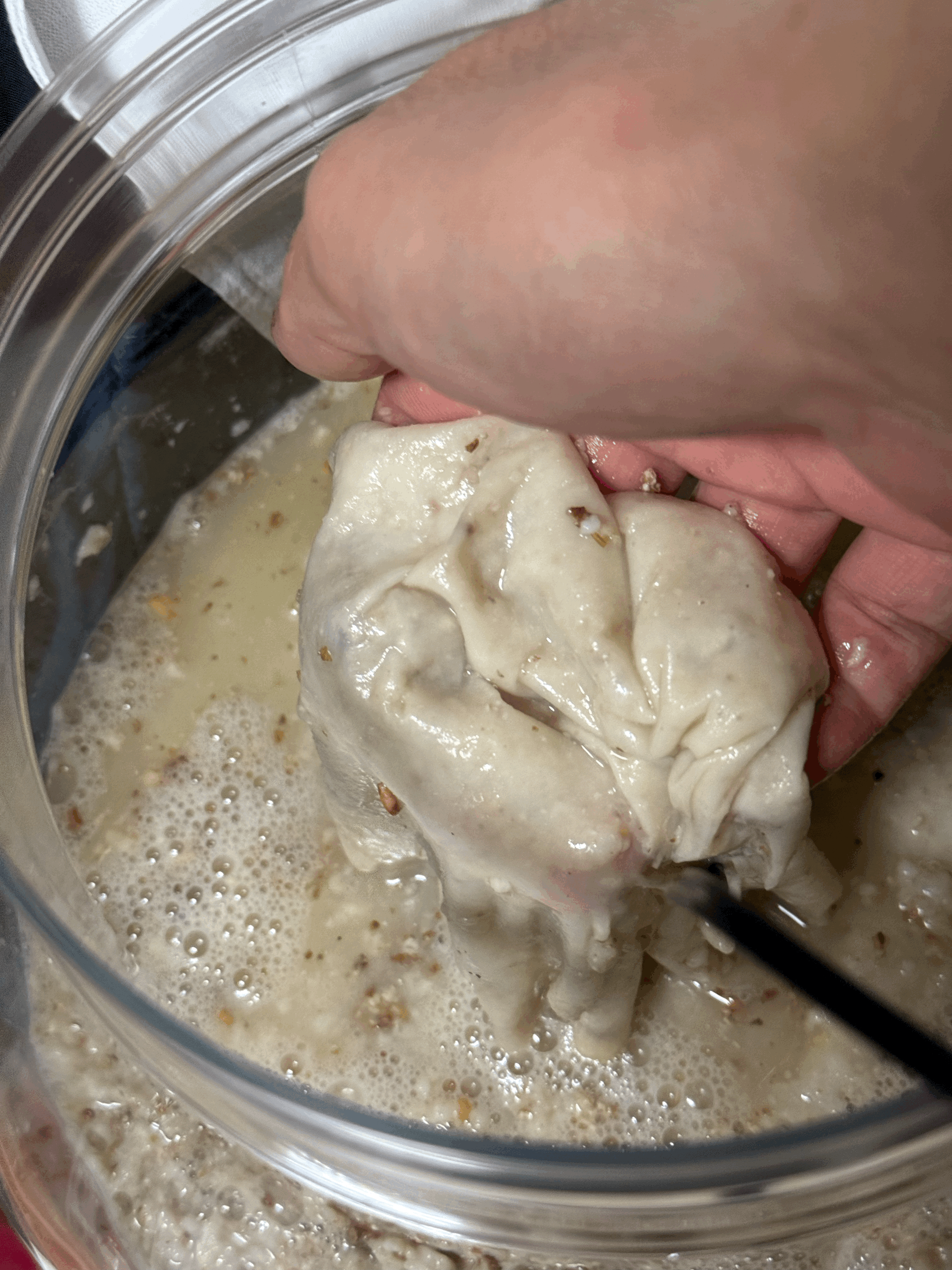 2차 거름망은 200메쉬를 썼는데, 평소처럼 꽉 짰다.