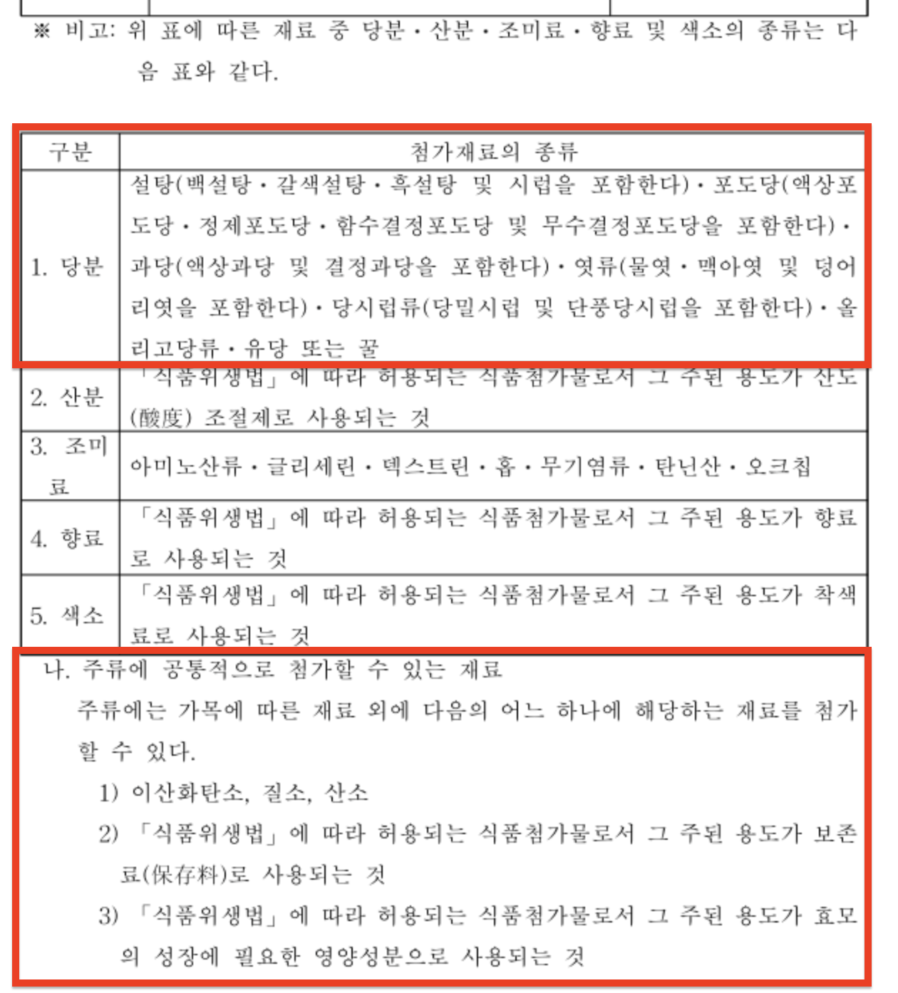 그나저나 탁주와 약주에 넣을 수 있는 첨가물 종류가 참 많긴 많구나.