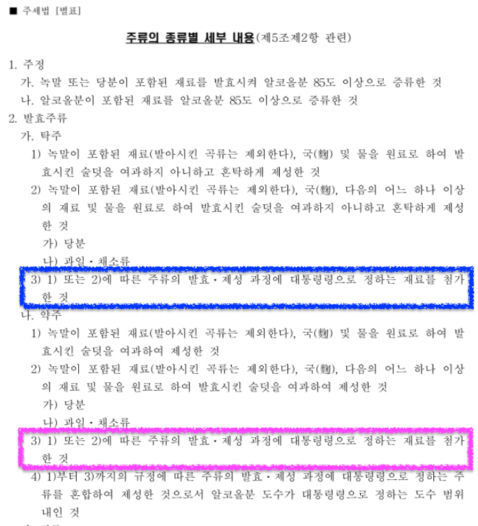 [참조.3] '주세법시행령[별표1]', https://law.go.kr/LSW//lsBylInfoPLinkR.do?lsiSeq=269483&lsNm=주세법+시행령&bylNo=0001&bylBrNo=00&bylCls=BE&bylEfYd=20250228&bylEfYdYn=Y