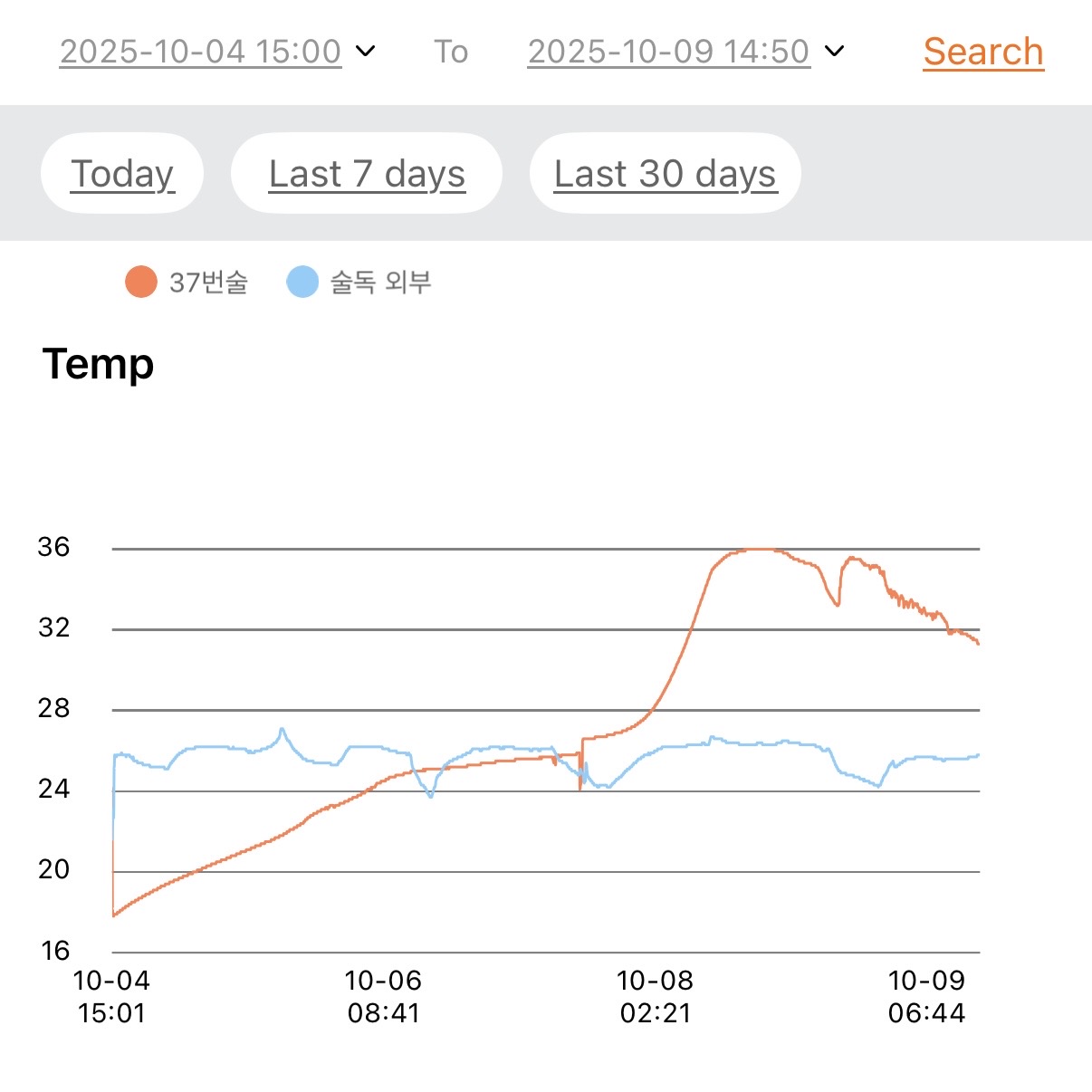 품온 35.0℃, 발효환경 24.9℃