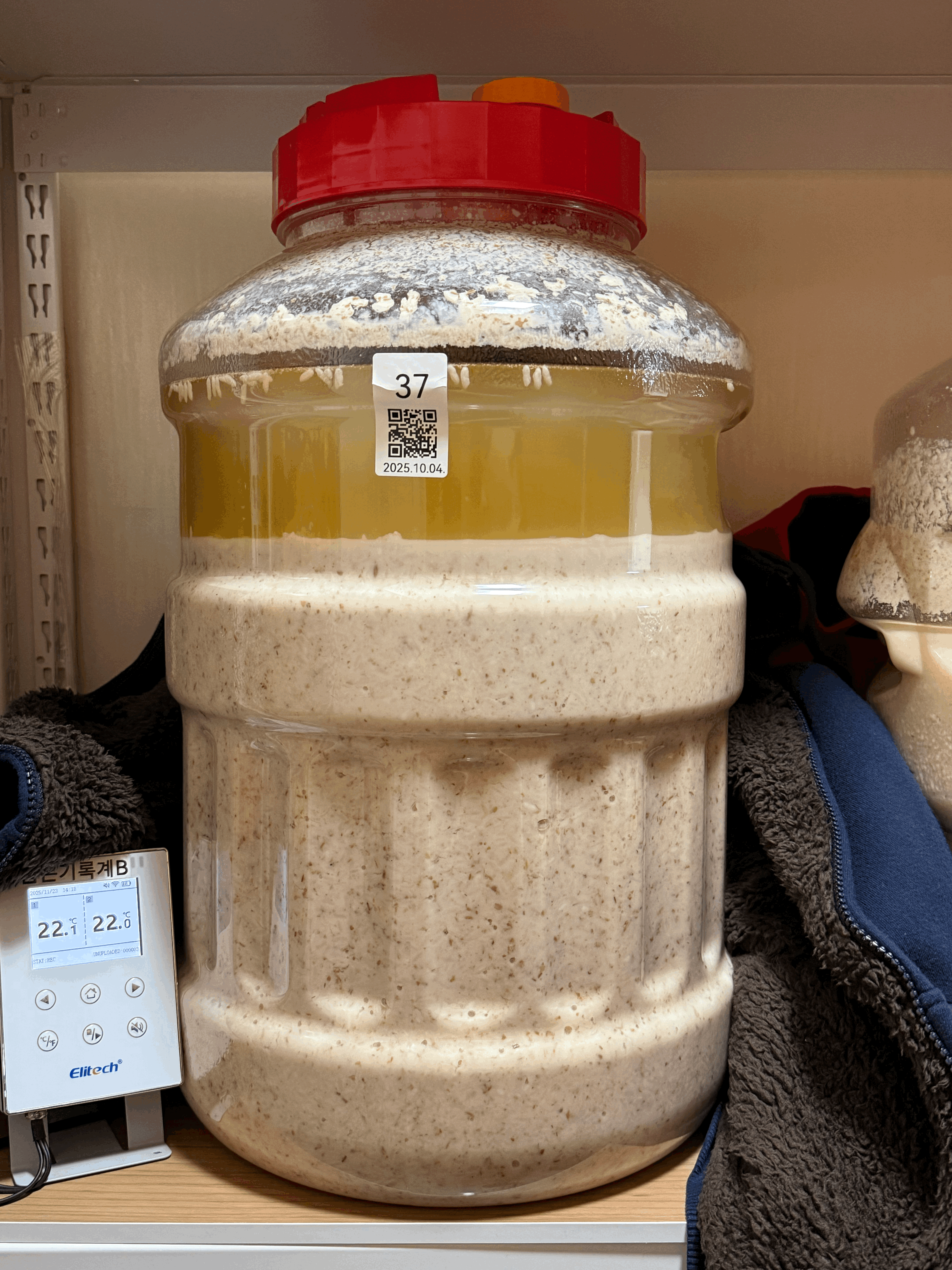 호기성 환경에서 신맛이 더 강해질 수도 있으니 이 쯤에서 혐기성 발효로 전환하되, 이번에는 평소와 달리 냉각하지 않은 채 후발효를 진행해보기로 한다. 이는 술덧의 당화 속도를 늦추지 않기 위함이다.