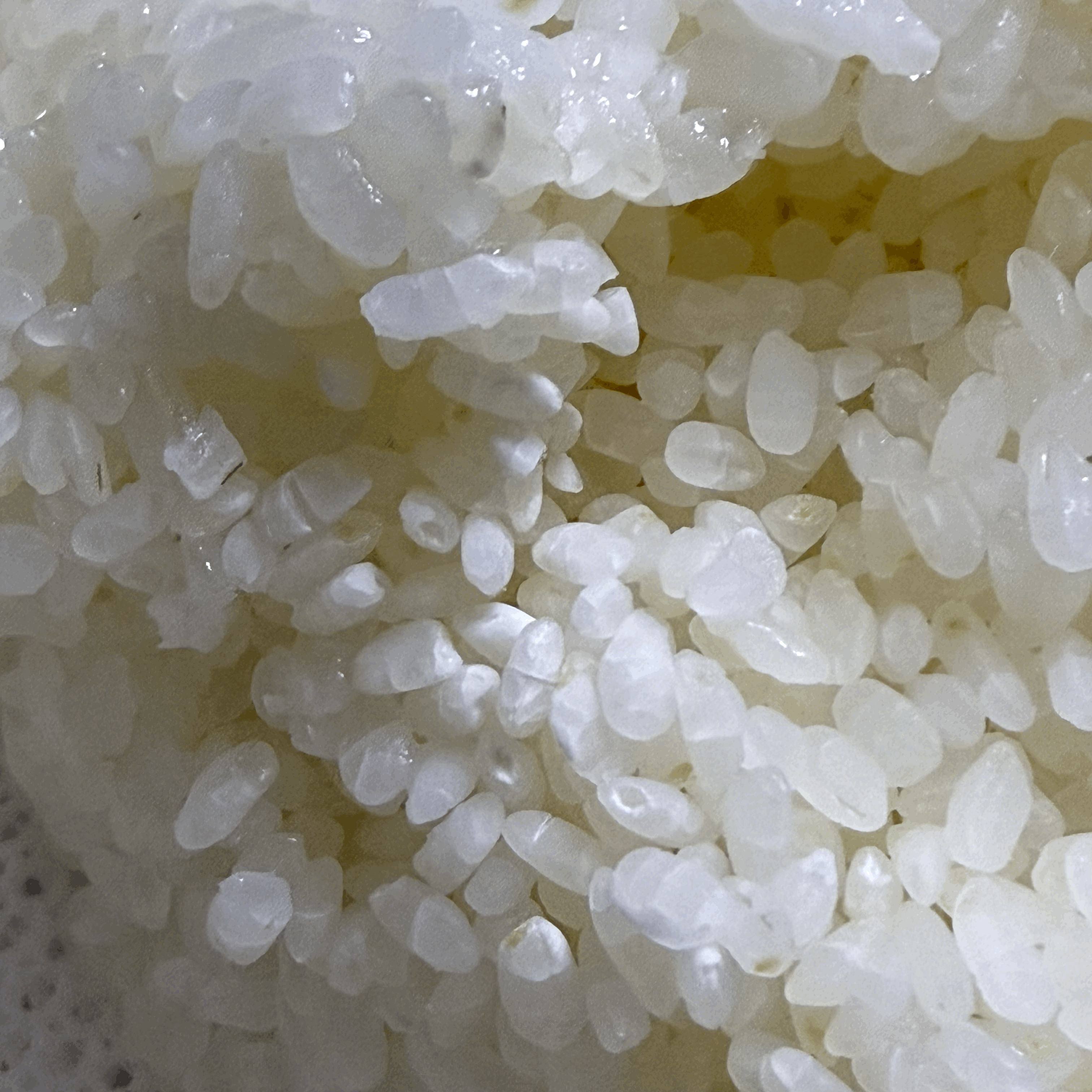 뚜껑이 제대로 덮이지 않은 문제로 인해 윗면 모퉁이의 일부 고두밥이 설익었다. 설익은 고두밥은 덜어내 버렸다. 그 외 대부분의 고두밥은 잘 익었지만, 시루보와 접촉한 부분은 질어졌다. 역시 내가 고두밥을 찌는 방식으로는 삼베 시루보가 더 나은 것 같다.