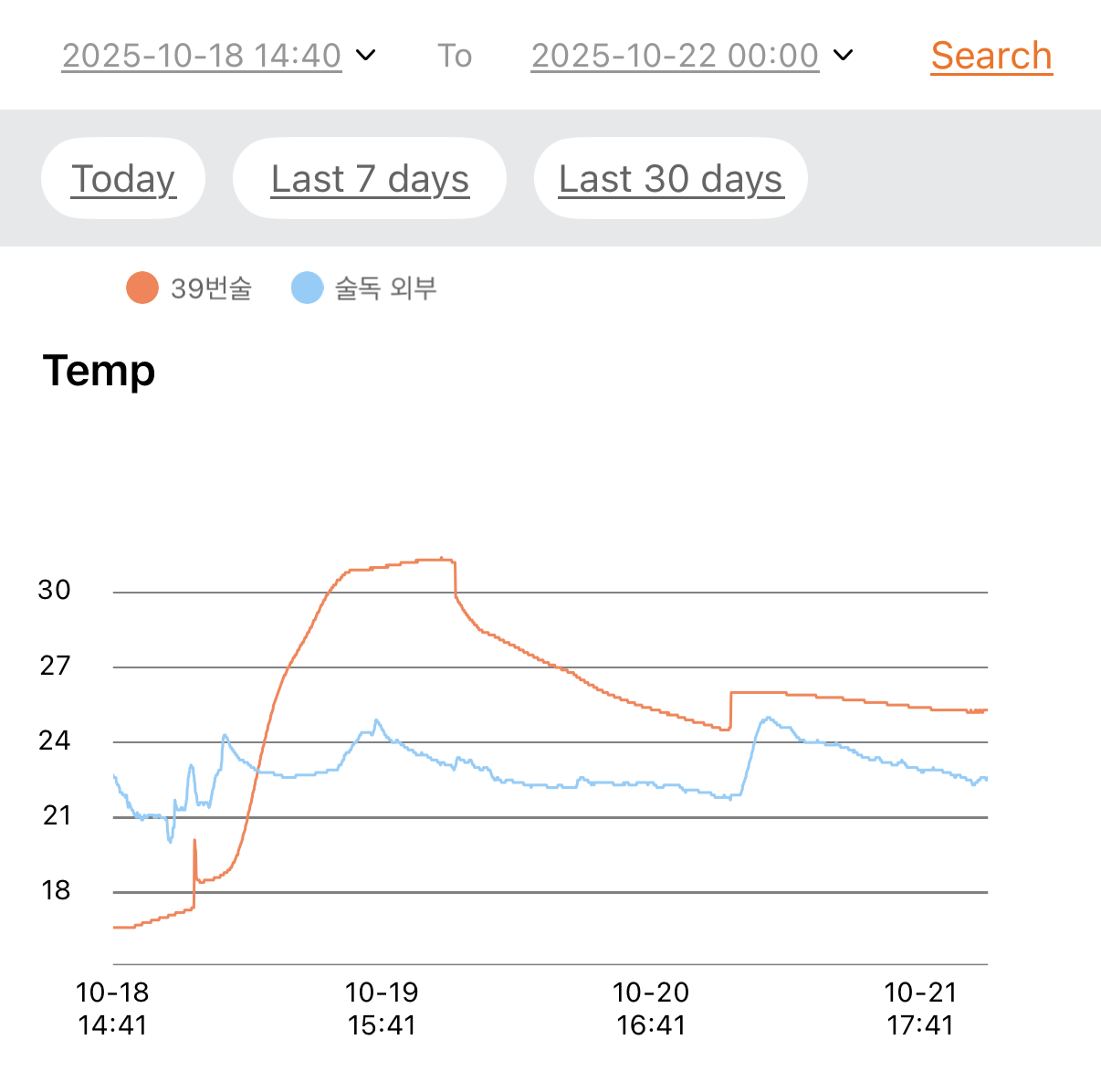 술독 옆면을 만져보니 실온 수준이다.