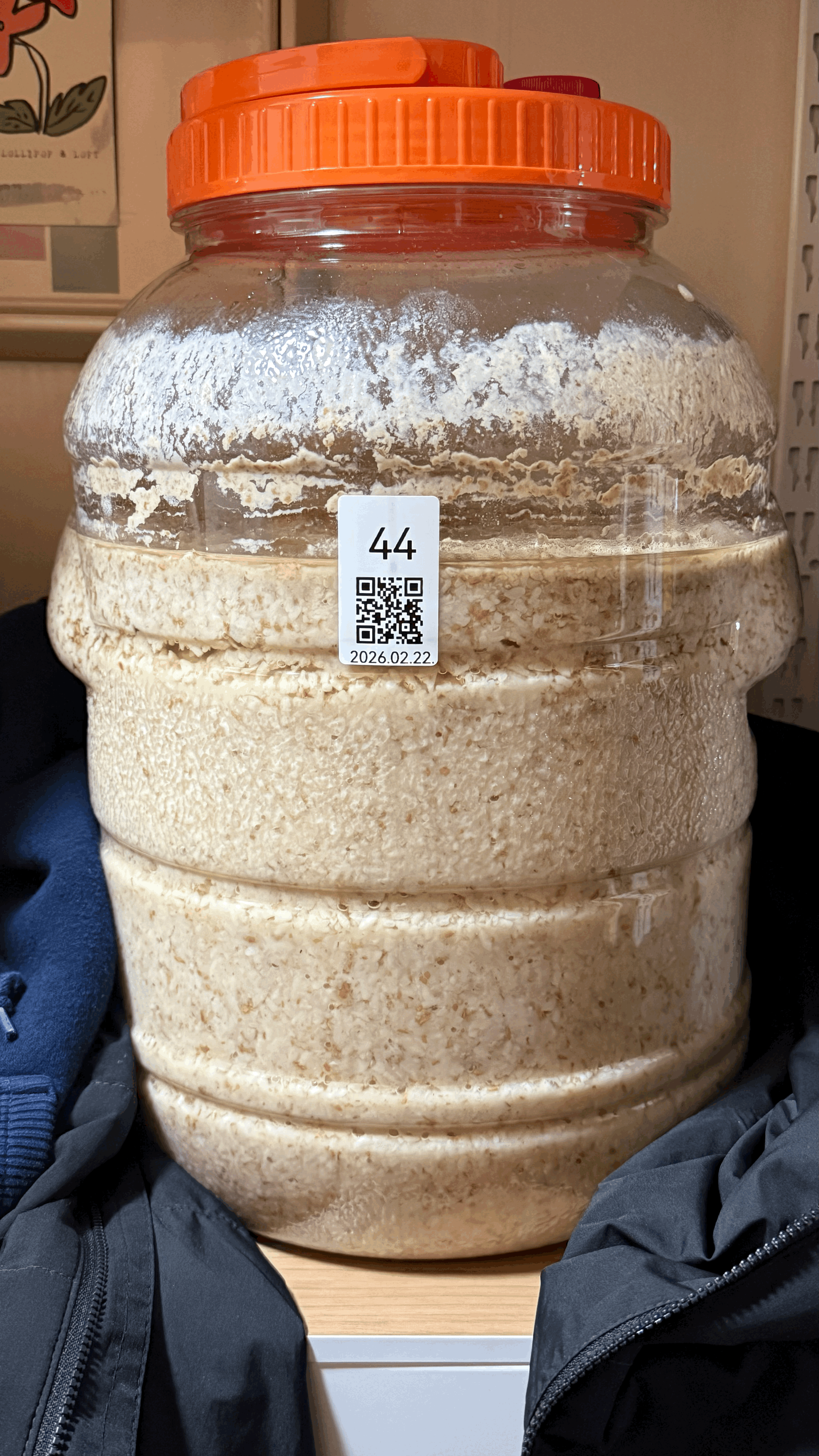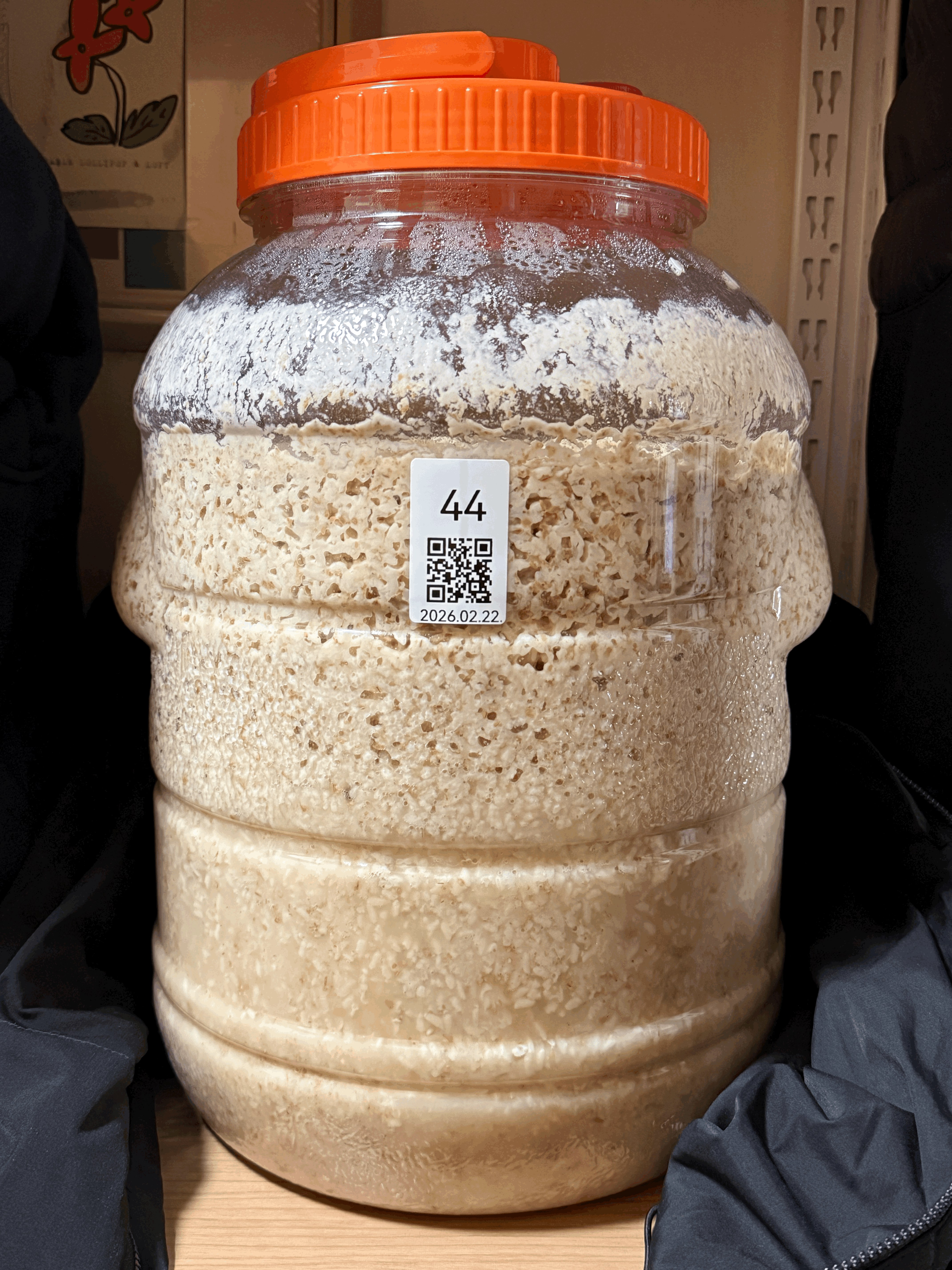 이제 품온이 어느 정도 식었으니 후발효로 전환한다. 품온센서, 면포, 고무줄을 모두 제거하고 뚜껑 닫는다. 실온에서 차광 목적으로 옷을 입힌 후 후발효 진행한다.