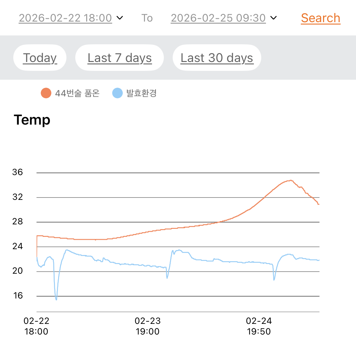품온 30.0℃, 발효공간 21.5℃
